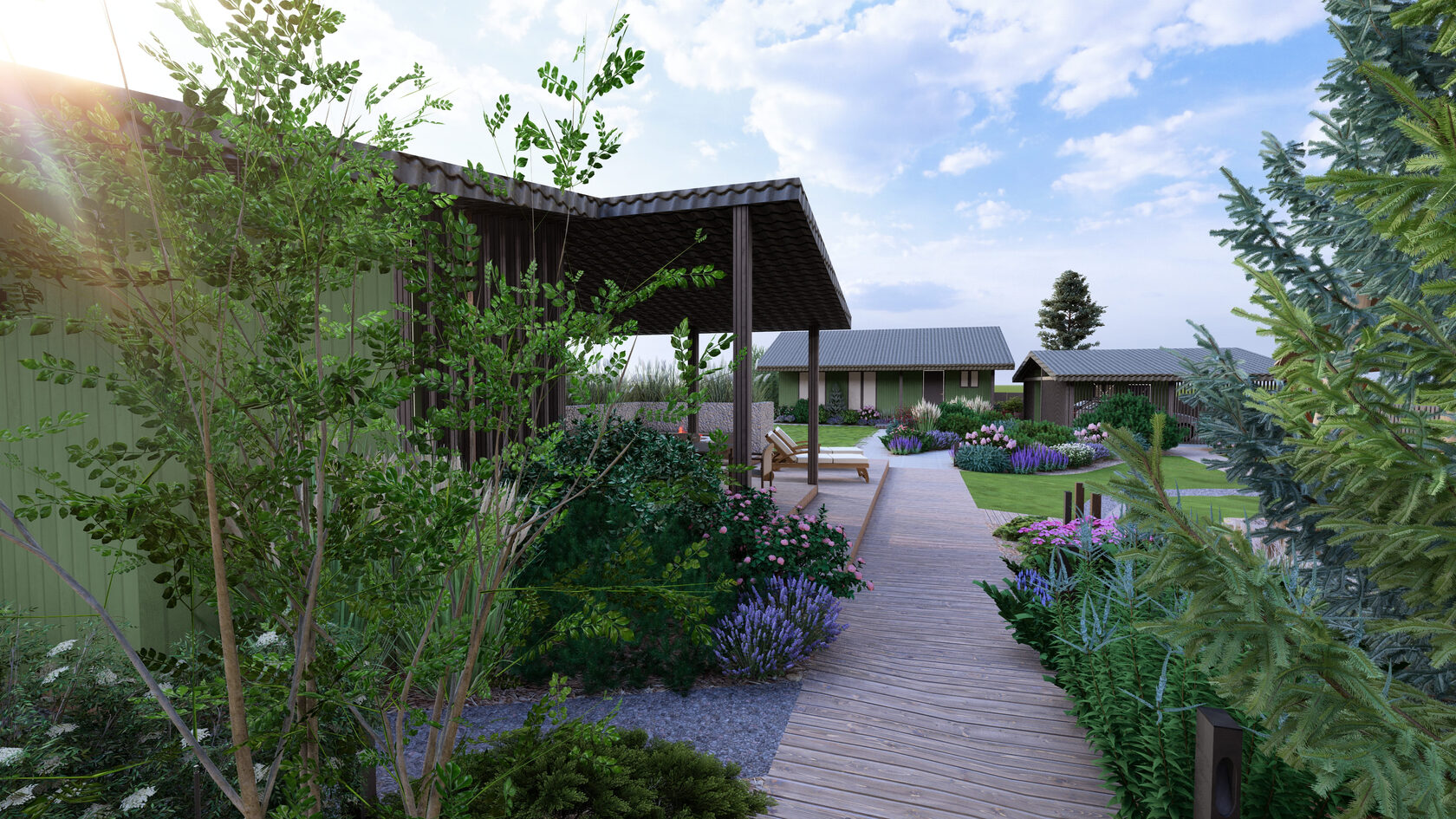 Мы создаём уникальную идею, отрНа этапе визуализации вы можете «прогуляться» по будущему саду, чтобы оценить и утвердить планировку, материалы и подбор растений.ажающую вашу индивидуальность и связывающий архитектуру дома с окружающим пространством.
